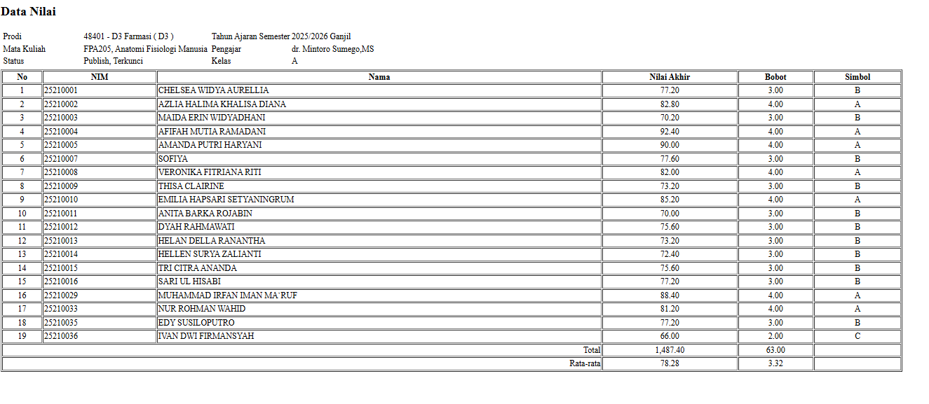 mintoro, sumego Nilai Anatomi Fisiologi A. Poltekkes TNI AU Adisutjipto.